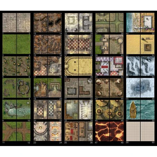 An RPG Map for any encounter at your fingertips in a book that travels with you. Opens to create huge RPG encounter maps. The maps are wipe-clean and themed to be customisable and reusable to suit any encounter.