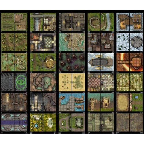 An RPG Map for any encounter at your fingertips in a book that travels with you. Opens to create huge RPG encounter maps. The maps are wipe-clean and themed to be customisable and reusable to suit any encounter.