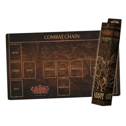 Elevate your game experience with the Flesh and Blood Classic Playmat. Set the tone for epic battles, with defined zones to equip your hero and the mat-to-mat shared combat chain to engage your opponent in action packed combat! 14″ x 24″ surface area. 1.5mm thickness for ease of storage in popular playmat tubes.