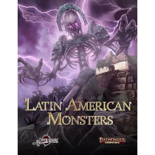 Latin American Monsters brings you incredible Pathfinder Second Edition creatures from Central and South America and the Caribbean, from ahuizotl to zuvembie! You’ll find divine messengers and protectors like the magui and xiuh couatl alongside sinister fiends like the soucouyant and xipe totec the Flayed Lord, living fey like the curupira and encantado alongside deathless terrors like the llorona and tzitzimitl, living engines of destruction like the lusca and chupacabra and unliving constructs like the cuauhxicalli and xolo guardian. Guardians of the wild like the tunche and madremonte stand beside fantastic versions of real-world creatures like the anaconda, giant iguana, black caiman, jaguar, and giant mantis shrimp!