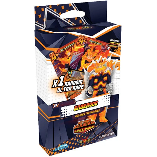 This Deluxe Starter Set contains 1 Endeavor character card and a 50-card deck that is playable right away! As an extra bonus, there is 1 random Ultra Rare foiled card from the Heroes Clash booster set included! Use this deck as a building block in your training and take another step in becoming the #1 Pro Hero!