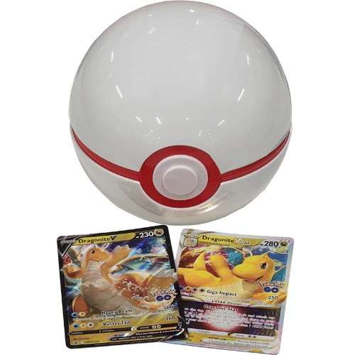 With a VSTAR Power that shares loads of Energy with your Pokémon, Dragonite VSTAR soars to strategic heights, and you’ll receive it along with Dragonite V in this special collection featuring the Pokémon GO expansion. To top it off, the sturdy Premier Ball case holds a fully sleeved deck of cards for an ultimate statement of Pokémon Trainer style!