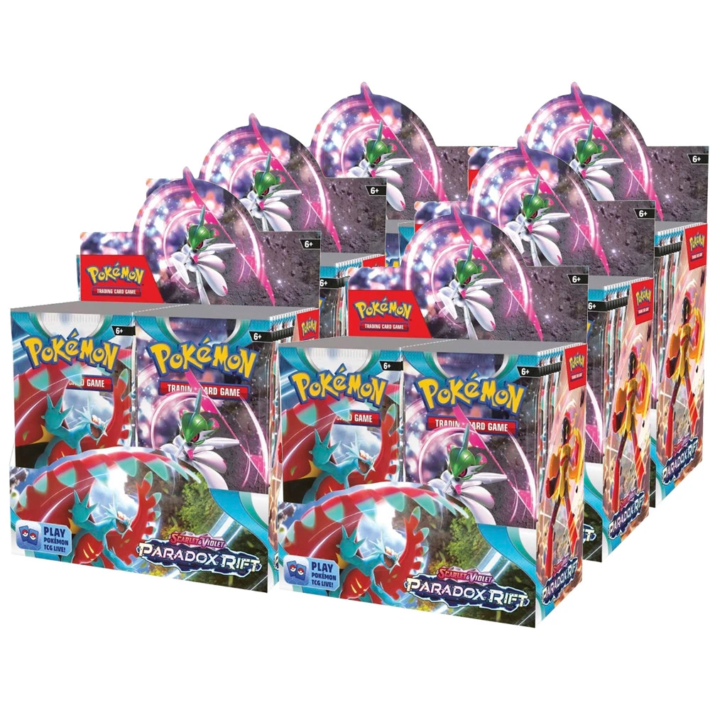Dive into the clouds and explore a land that appears to be unbound by time! With ferocious attacks, Ancient Pokémon like Roaring Moon ex and Sandy Shocks ex appear alongside artificial Future Pokémon like Iron Valiant ex and Iron Hands ex. Meanwhile, Garchomp ex, Mewtwo ex, and others Terastallize to gain new types, as Armarouge ex, Gholdengo ex, and more Pokémon ex join the fray. Adventure awaits as timelines collide in the Paradox Rift expansion!