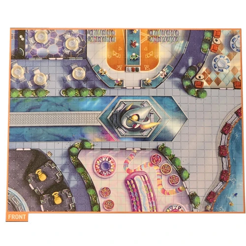 After days or weeks cooped up in a starship on a long journey, heroes deserve some time to stretch their legs (or other ambulating appendages) and interact with their fellow citizens of the galaxy. And there’s often no better place to do so than a wide-open thoroughfare on the nearest space station! This double-sided Flip-Mat features a luxurious stretch of walk through an ultra-modern space station on one side and a bustling, crowded marketplace area on the other. Flip-Mats present ready-to-use science-fantasy set pieces for the busy Game Master. With Space Station Promenade, you’ll be ready for when your players visit their next port of call!