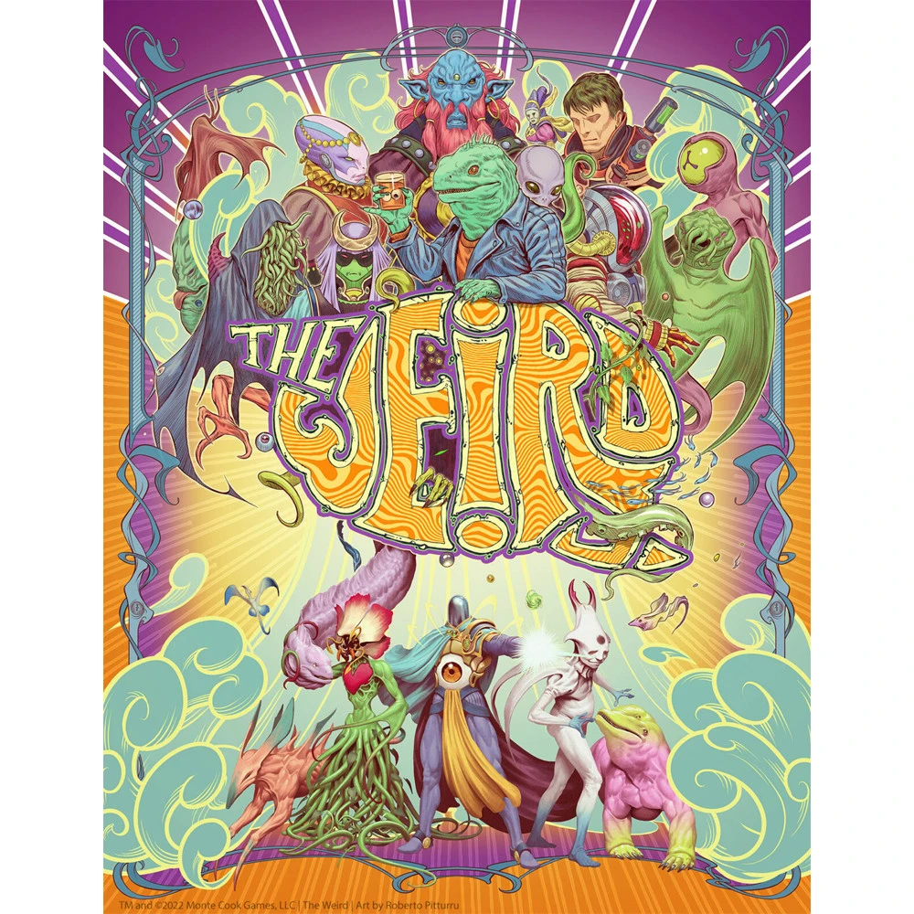 The Weird contains more than 100 lists of ideas, each over 100 entries long – that’s well over 10,000 (more like 12,000) mind-bending bursts of inspiration. The lists are organized by genre, so you can easily reference those best suited for your game, whether it’s science-fiction, horror, fantasy, or whatever. Use them during game prep or on the fly to build great characters, encounters, or campaigns.