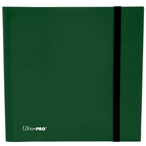 12-pocket Forest Green PRO-Binder with embossed middle black web material gives cards a classic framed look. Sideloading pocket design to prevent cards from easily falling out. Elastic strap holds the binder shut when not in use. All materials are made from archival-safe, acid-free non-PVC material. Holds 480 cards in Ultra PRO Deck Protector sleeves.