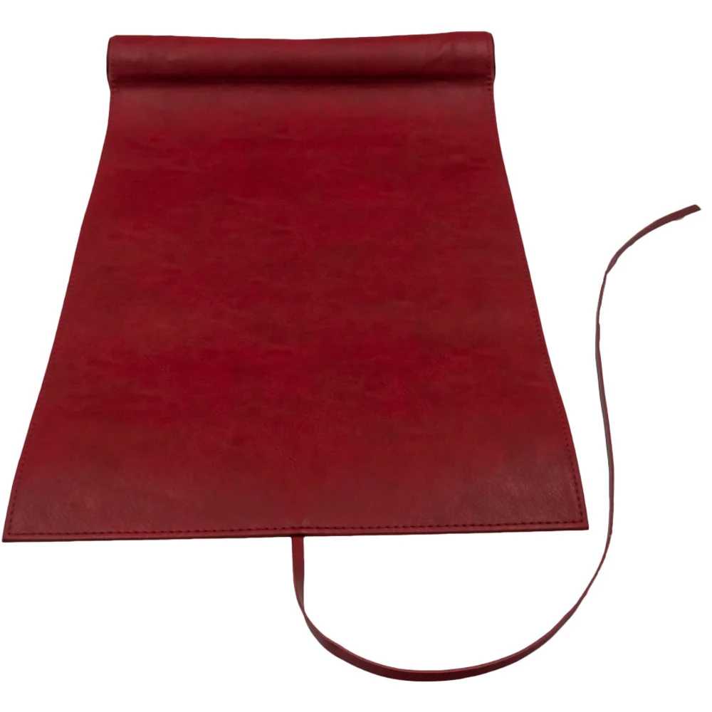 This Dice Scroll Map offers premium dice storage and functions as a dice rolling mat. The Sword Coast Map, illustrated by Deven Rue, is made with a durable Burgundy Red leatherette exterior and a cream-colored backing for the map on the rolling surface with D&D ampersands on each end. This soft roll-out mat will safely store your dice and protect your table. The zippered compartment holds approximately 20 dice. The rolling mat rolls around the zippered compartment and is secured shut with a single tie to look like an ancient leather-bound scroll.